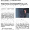 Yves Poey - DE LA COUR AU JARDIN : Dans ce texte bouleversant et par certains égards, éprouvant, au sens premier du terme à savoir le partage d'une épreuve, la dramaturge et pédagogue du théâtre Elisabeth Gentet-Ravasco nous fait réfléchir à toute une série de questions […] Stéphane Daurat a bien compris qu’il était nécessaire de se situer dans une recherche de simplicité et d’intense rigueur. Ici, pas d’effets, pas de faux-semblants. De manière à laisser beaucoup de place au public afin qu’il puisse ressentir ses propres émotions. […] Mademoiselle Augereau évolue devant ces deux grands lés blancs sur lesquels sont projetées les images cotonneuses, mouvantes de Fanny-Gaëlle Gentet. Un monde devenu à jamais brumeux et abstrait. Le groupe Avant l’aube signe une belle création musicale à l’image de ces projections. C’est également un spectacle qui s’écoute intensément. […] Il faut également saluer les belles lumières de Sébastien Vergnaud, douces ou plus crues selon les moments du texte.
