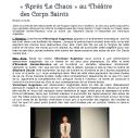 PARIS BLOG THÉÂTRE: Avignon c'est aussi des gifles ! Des spectacles qui vous scotchent au fauteuil. Des textes qui vous tiennent en apnée et vous laissent avec dans la tête des remises en question. Après le chaos est un de ces spectacles où l'on ne sort pas forcément le sourire aux lèvres mais avec la fierté d'avoir assisté à une explosion de talent, d'amour et d'émotion. […] Un spectacle à voir pour comprendre, aimer et vivre. Empli d'humanité et de compassion.