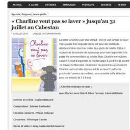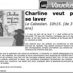 Comédie drôle et tendre, "Charline veut pas se laver" entraine les enfants de 3 à 8 ans à suivre avec complicité l’histoire de cette petite fille, pas toujours très sage.