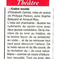 Mise en scène Philippe Person avec Sophie Balazard et Arnaud Riou.