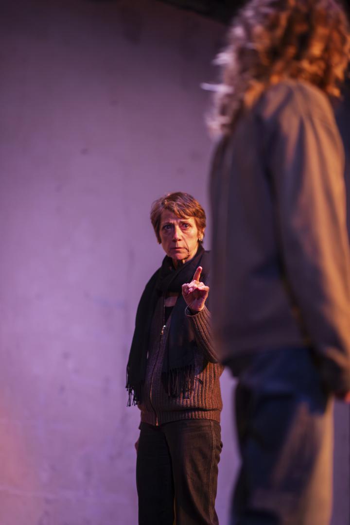 La figure de la grand-mère, représentée par une marionnette à taille humaine, apparaît et disparaît au fil des scènes. Elle incarne l’omniprésence des lois patriarcales et sociales inscrites dans les corps et les esprits.